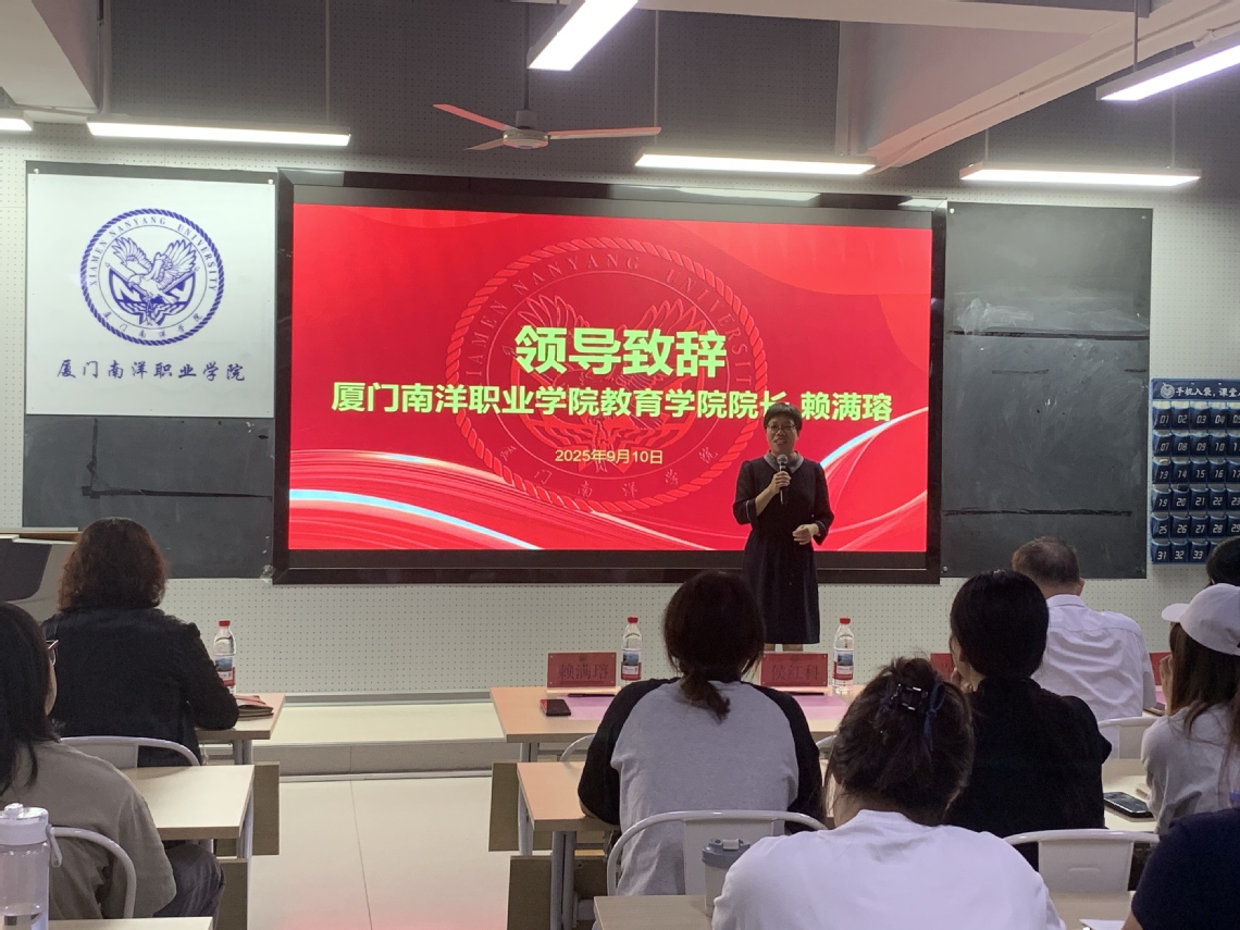 2025年9月10日,正值我国第41个教师节,厦门南洋职业学院在教学楼A栋201隆重举行家庭教育微专业启动仪式。学校副校长许智坚教授、校长助理侯红科教授、教务处处长邹少琴教授、教育学院企业副院长彭宁娟女士、教育学院院长赖满瑢教授、副院长牛婧君副教授、院长助理纪海波等领导出席仪式,与微专业授课教师及首届全体学生共同见证了这一重要时刻。启动仪式由教育学院学前教育系主任丘丽红主持。