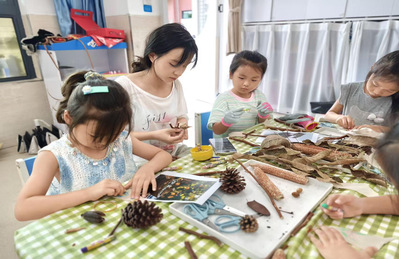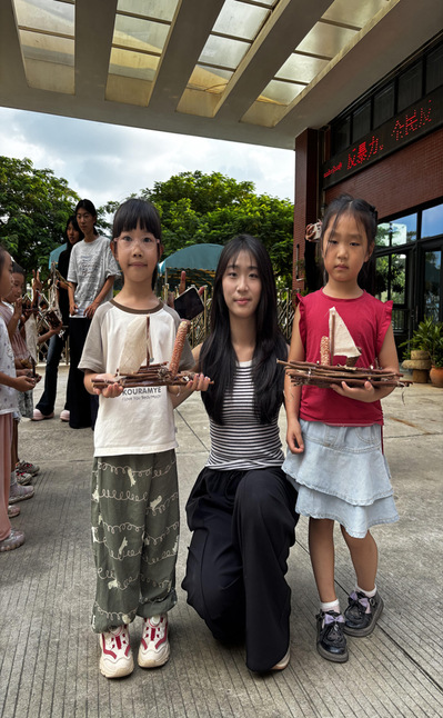 为深化教育专业实践教学,提升学生的教育实操能力。10月17日,厦门南洋职业学院教育学院学前教育教研室李晓燕老师和美术教育教研室陈伟哲老师共同组织带领童创绘本社、书法社成员及美术教育专业学生共12名志愿者,走进厦门市翔安教育集团滨海幼儿园,开展了一场以自然物为材料制作创意小船的实践活动。