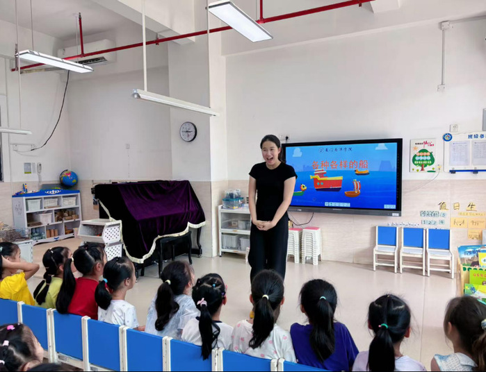 活动伊始,志愿者化身“小老师”,通过丰富有趣的图片,为孩子们带来了一堂生动精彩的“各种各样的船”科普小课堂。从古代的木帆船到现代远洋巨轮,从浮力原理到风力驱动,讲解深入浅出,激发了孩子们浓厚的兴趣与探索欲望,使抽象的科学知识在轻松氛围中变得直观可感。