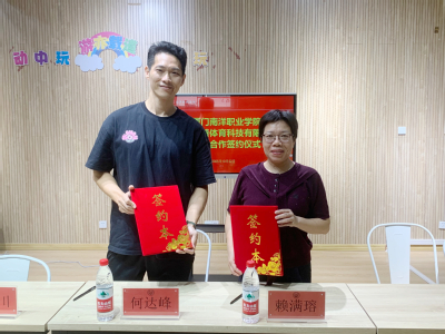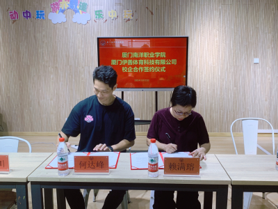 签约仪式现场,厦门南洋职业学院与厦门伊善体育科技有限公司的代表共同签署了合作协议,并为“实训实习基地”揭牌。