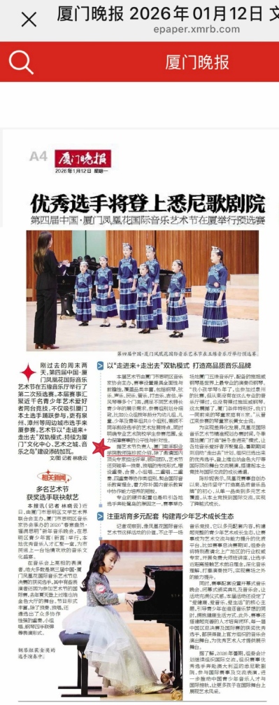1月10日至11日,由厦门市思明区音乐家协会主办的2024-2025第四届中国·厦门凤凰花国际音乐艺术节在厦门五缘音乐厅隆重举行。本届艺术节涵盖门类广、内容多元,兼具全面性与前瞻性。我校作为承办单位之一,教育学院师生参与此次艺术盛会。